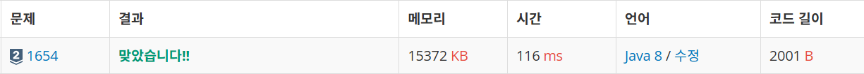 1. 랜선의 개수 K, 필요한 개수 N (1<=K<=10,000, 1<=N<=1,000,000, K<=N)